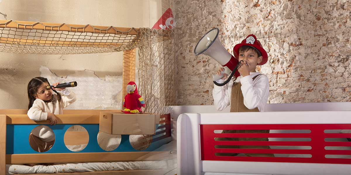 Wie hätten Sie sich als Kind Ihr Zimmer gewünscht? Wahrscheinlich wäre es eine Mischung aus Burg und Schiff. Es wäre ein Ort an dem man sich verstecken und gleichzeitig auf Entdeckungsreise gehen kann. Ob als Piratenbett mit Kletterseil und Bullaugen oder als Ritterbett mit Burgzinnen, ein Spielbett regt die Phantasie jedes Kindes an und fördert durch Rollenspiele und Bewegung die kindliche Entwicklung.