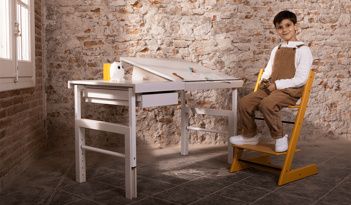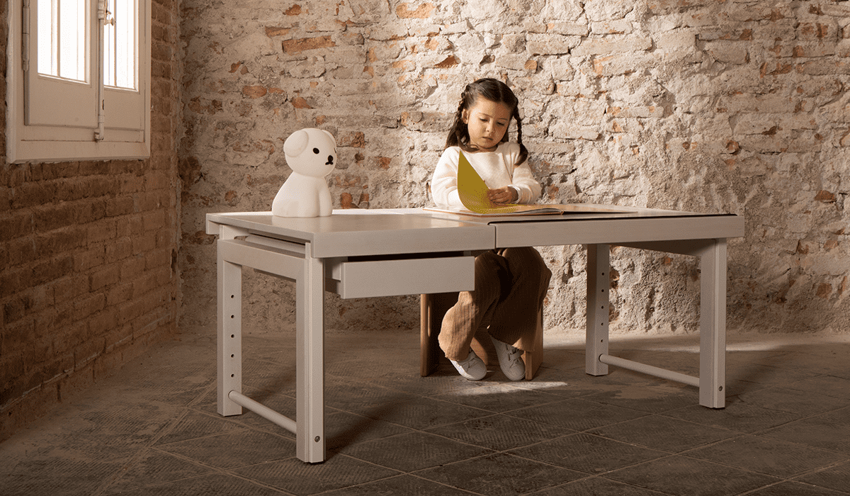 Ziggy de Breuyn sind der Kinderschreibtisch, der mit dem Kind wächst und schöne Kindertische und Sitzmöbel.
